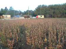 大豆畑の面積は全部で約130アール 写真 上、8/13撮影 紫色のきれいな花をたくさんつけます 左・上 7/15 播種直後 下 8/29 左下 8/29撮影 花の季節が終わり 実が膨らみ始める |